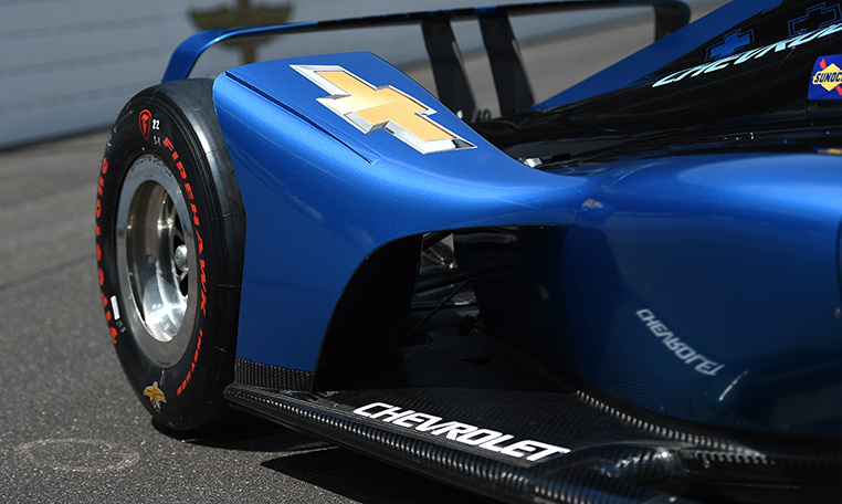A lower engine cover and lower short oval/road course rear wing endplates provide a long, lean look. Gone are the rear wheel guards, which made the car appear bulky.