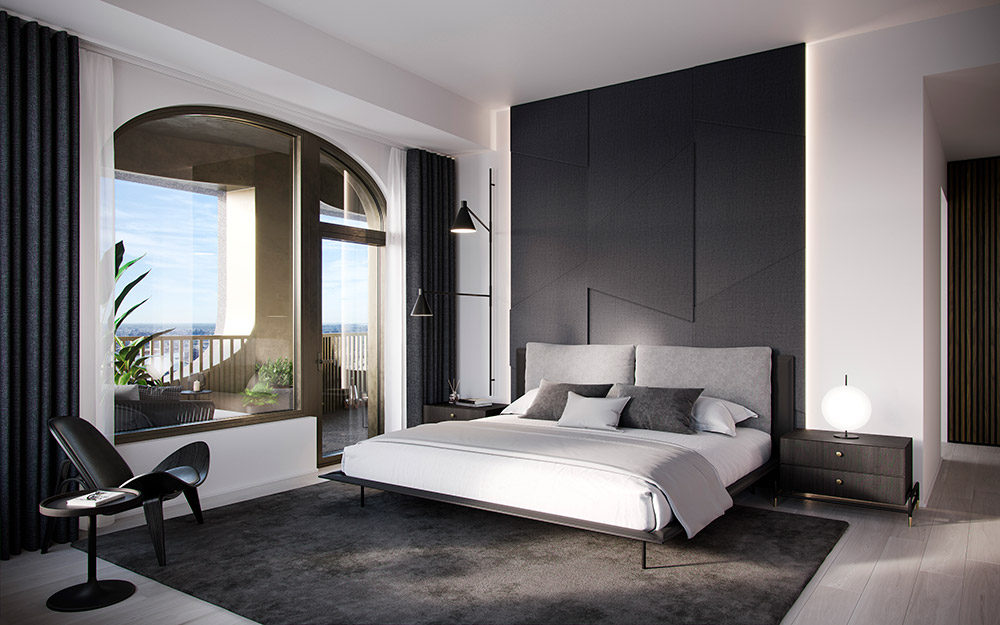 The five fully furnished exclusive homes are located on the 59th and 60th floors of 130 William and feature a unique and highly distinctive design identity. Each home features a private, expansive outdoor loggia spanning the entire length of residence and is set behind the unique rhythms of the hand cast building façade, with bespoke screens dividing the balconies into a series of distinct zones for dining and relaxing. The residences are fully furnished, with unique visual elements and accessories, hand-crafted materials and textiles and furniture from the acclaimed Aston Martin Home Collection by the Italian manufacturer Formitalia.