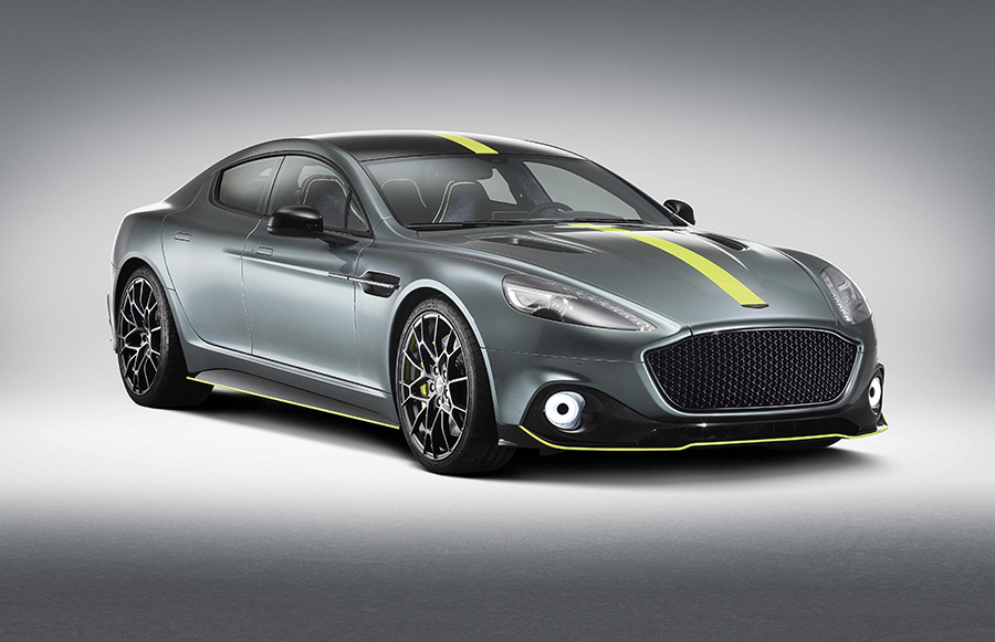 The Rapide AMR will be available in three different design schemes. The Standard and Silhouette schemes offer four colours – Mariana Blue, Scintilla Silver, Lightning Silver and Onyx Black – with the Standard scheme adding AMR Lime accents to the splitter, sills and rear diffuser. The Silhouette scheme eschews the Lime accents and instead adds a full-length contrasting stripe in China Grey or Clubsport White.