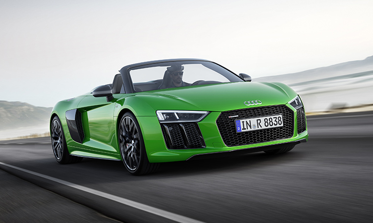 The most powerful Audi engine ever destined for series production is about to raise the tempo in what is already one of the most intoxicating driving machines offered by the brand – the open-air, high intensity R8 Spyder is to adopt the gloriously vocal 610PS V10 from the R8 V10 plus Coupé. The new Audi R8 Spyder V10 plus is capable of 0-62mph in a mere 3.3 seconds and a top speed in excess of 200mph, spurred on by its significant 70PS power advantage, and by a significant 25kg weight reduction, versus the ‘standard’ V10 Spyder.