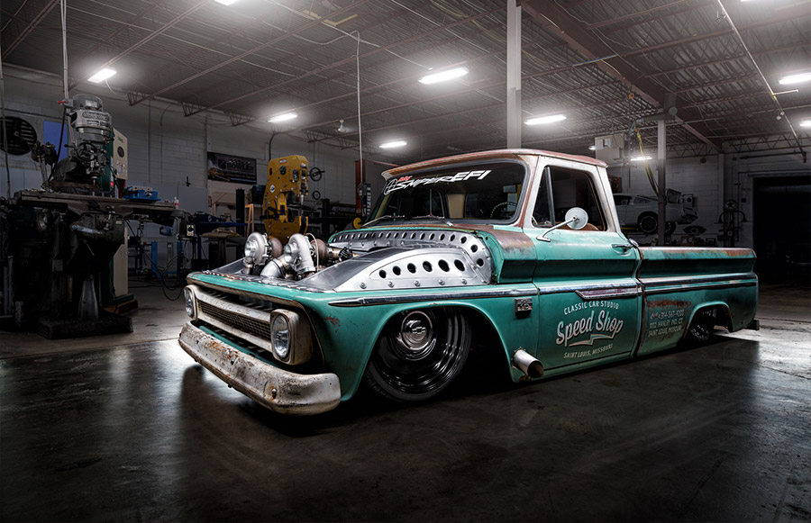 This unique approach was evident in the premiere season of “Speed is the New Black,” which was highlighted by the build of a 1966 Chevrolet C10 named “Tiffany,” a twin-turbocharged pickup that features a 346ci LS1 producing upwards of 1,000 horsepower. Another season-one creation, a 1957 Chevrolet Bel Air featured a blend of pro-touring and high-bank speedway styling cues backed by a 383 stroker motor and RideTech suspension set up to help the car handle. Another popular season one build was a 1990 Porsche 911 that rolled into the shop with an 80’s vibe thanks to Guards red paint and a “whale tail.” The team gave the 964 model Porsche a “modern outlaw” look with Sunoco blue paint, Rotiform wheels, lowered KW suspension, and custom euro-style headlights. At the conclusion of every build, Noah accompanies the client in their renovated ride and shows them the power and performance each build is capable of.