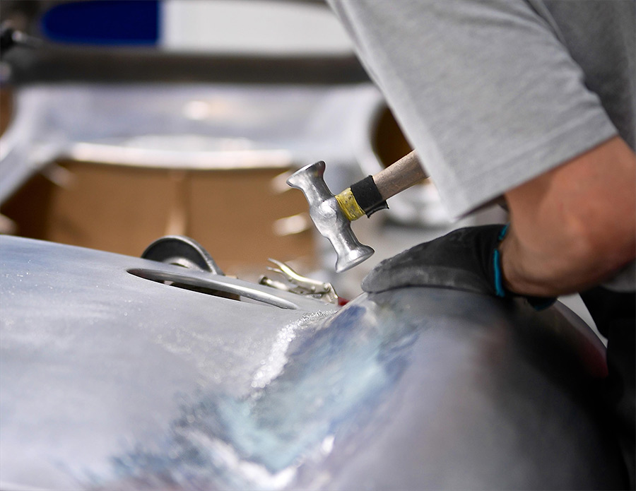 Envisage Group’s highly skilled workforce employed English Wheel metal-forming techniques and precision hammer-forming to hand-craft the beautiful and complex XKSS bodies.