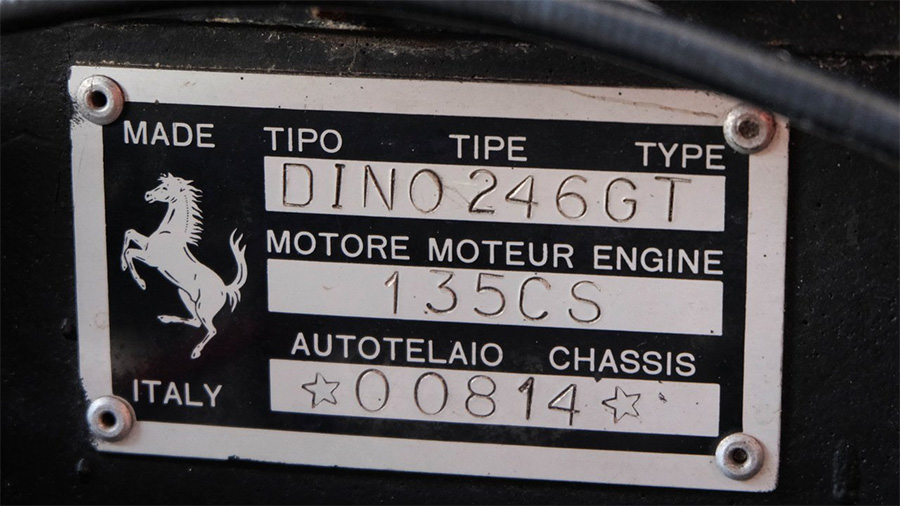 This particular Dino 246 GT “L-Model” is production sequence number 110 of the 358 examples completed it was ordered new in February of 1970 and completed one month later in March of that same year. The order specified a standard production “European-Domestic Market” example finished in the catalog color of “Giallo Fly” or Fly-Yellow with the standard black, vinyl (Nero 161) interior.