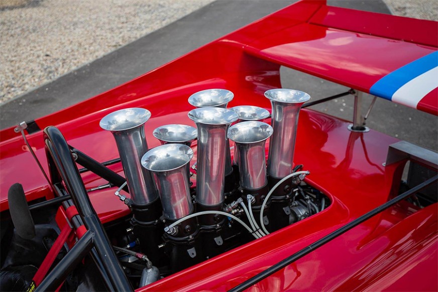 Team VDS were competing in the 1971 Interserie Championship with a McLaren M8E, before receiving McLaren’s latest offering, this, the M8F. As was common in this era of competition, the car was sold without an engine, allowing the team or owner to choose exactly as they wished, seeing as there was no regulation on engine size or manufacturer etc. This McLaren M8F was fitted with an incredible 7,500 cc big-block alloy Chevrolet V8 engine, fitted with twin Garrett AiResearch turbochargers! This monstrous engine was developed by Swiss engine experts, Moteurs Morand, and was reputed to generate a ground-shaking 930 bhp!