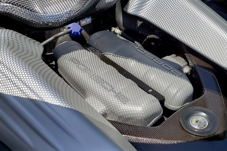 Since new, the car has been shipped to and from Carlsen Porsche and Santa Barbara Auto Group for regimented servicing as documented by extensive receipts that accompany the car. Receipts available on request. As a prevention measure, the car has had a plastic bra on it since delivery which has prevented any paint chipping in the front. It is hard to imagine an example of this revered modern Porsche arriving in 2019 after any amount of time on the road in a finer original condition and with zero paint work to speak of.