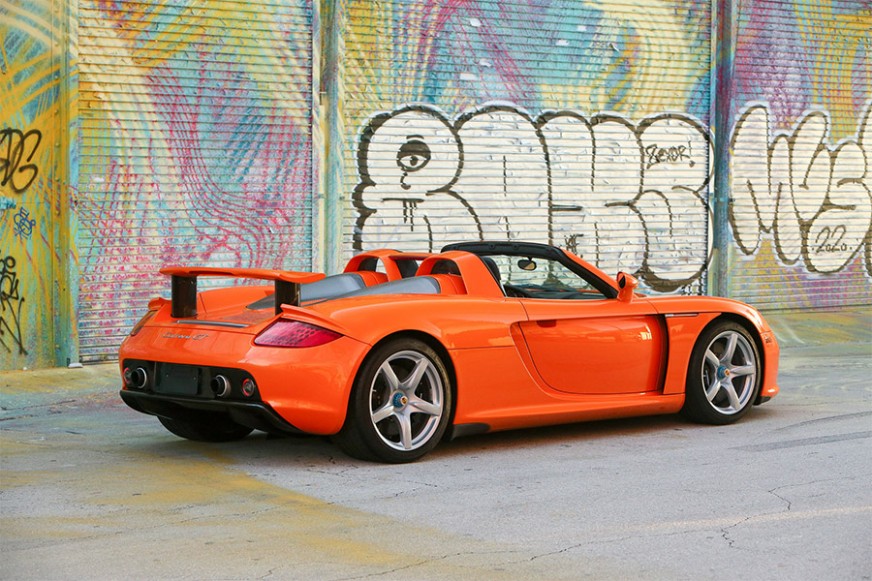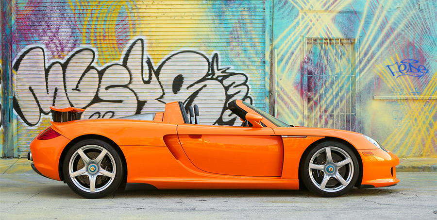 “World’s Best” certainly a dramatic statement but we think our 2005 Carrera GT just that. With its spectacular one-off Paint To Sample color of Arancio Borealis metallic – from the Lamborghini color palette – and just 269 miles from new, we can’t imagine a more collectible Carrera GT. Powered by a race-derived 605 horsepower 5.7 litre normally aspirated V10 engine and mated to a 6 speed manual gearbox with Porsche carbon-ceramic-composite clutch, ceramic disc brakes and removable hard top as standard equipment, factory Exclusive options of carbon fibre steering wheel, shift lever, brake handle, black brake calipers, fitted luggage, all owner’s manuals and spare keys, original window sticker, built June 2005 and delivered new via iconic Porsche dealer, Stoddard Imported Cars of Willoughby, Ohio, and sitting on an up-to-date major servicing tallying some $25,000.00.