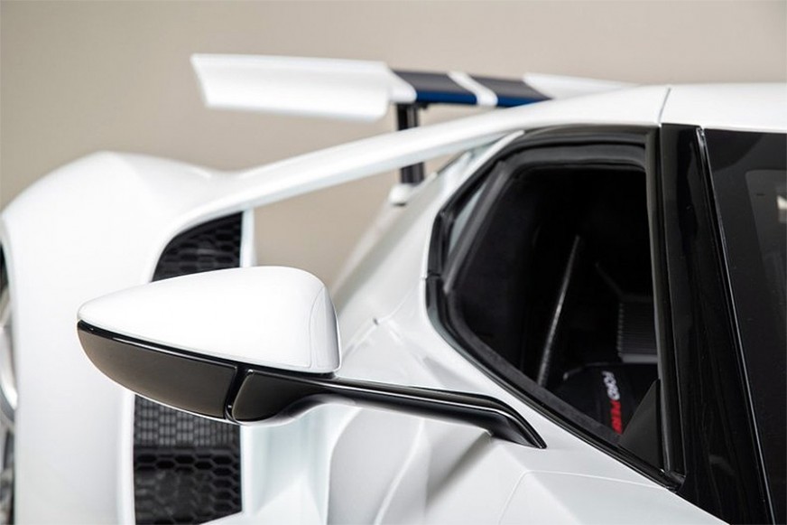 The new 2017 Ford GT application process saw a flooding of applicants who wanted to get their hands on one of the new cars, despite only 1,000 being announced to be built initially. With over 6,500 applications to date, many went home empty handed only to dream what it would be like to own Ford’s most advanced supercar. The owner of this car, however, was one of the lucky few. Securing the 43rd build slot for himself, he chose a stunning specification of white over black, along with Ford blue racing stripes along the top of the car. He chose this specific specification to match his 2005 Ford GT, which is also white with blue stripes. The 6-point racing harness was also ordered from the factory. He ordered this Ford GT with the optional Akrapovic titanium exhaust system, but at the time of assembly the exhaust system was not available. Instead of holding up production, he opted to purchase the titanium exhaust once it was available, and kept the Akrapovic system in the box instead of installing it. Before driving, he had X-pel clear paint protection film installed on the front bumper and fenders, along with lower parts of the car to avoid rock chips. He also installed fine screens in front of the air exit point behind the front wheels underneath both doors, a common upgrade to avoid debris from being ejected out the sides. Enjoying the car for a few years, he primarily kept his car stored indoors and only added 1,343 miles to the GT during his ownership. Included with this Ford GT is the original Ford GT sales kit, factory metal print of the GT, both keys, its window sticker, the titanium exhaust in its original box, and both car covers.