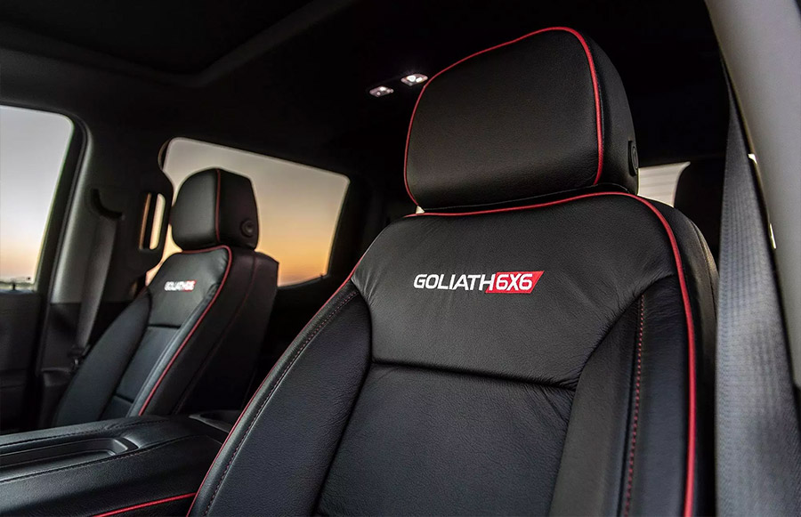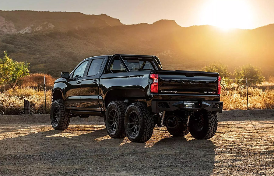 Galleries Hennessey Goliath 6×6 Truck Photo Gallery Photos Courtesy of: Hennessey Performance FacebookTwitterPinterestLinkedinReddItEmail Latest News Automotive News World’s Leading Hypercar Brands Unite for 2025 Concours at Wynn Las Vegas Automotive News Bulls Don’t Swim, They Charge: Lamborghini’s 7,600-HP Tecnomar 101FT Superyacht Breaks Cover Automotive News Scorched Carbon: Trick Rides Unleashes the World’s First All-Carbon ’69 Mustang Automotive News Guardians of the Raging Bull – Celebrating Ten Years of Lamborghini Polo Storico You Might Also Like Automotive News Hennessey H600 Tahoe & Suburban Unleashed: Supercharged Muscle Meets SUV Ut... Automotive News Hennessey Unveils the Venom F5 Evolution: America’s Most Powerful Road-Legal Hyp... Automotive News New Hennessey Venom F5 ‘Stealth Series’ Celebrates Extreme Personali... Automotive News Hennessey Partners with Bring a Trailer & Pennzoil for Charity Auction in S... Automotive News Hennessey VelociRaptoR 1000 ‘Super Truck’ Now in Production Automotive News Hennessey Starts Production of Limited Edition 850 Horsepower Cadillac Escalade-...