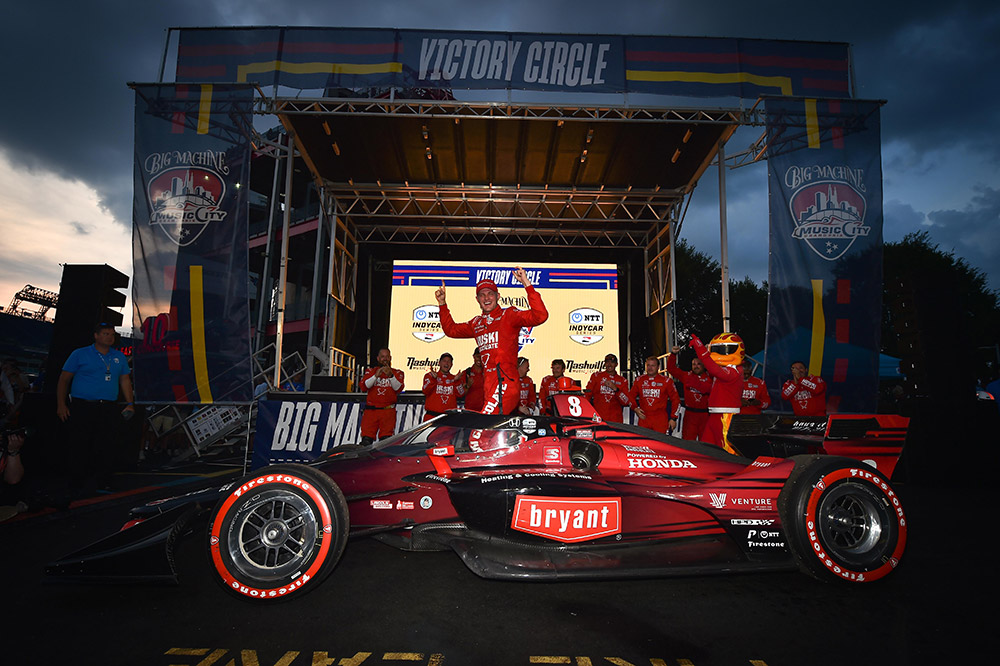 Seventy-five laps later, he drove the No. 8 Bryant Honda into victory lane Sunday as the winner of the inaugural NTT INDYCAR SERIES race on the streets of Nashville, Tennessee, in one of the most improbable results in recent memory.