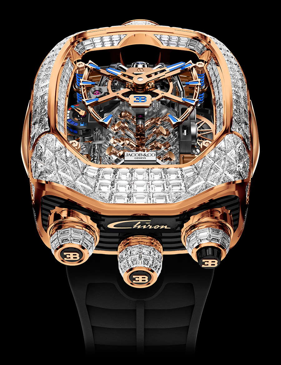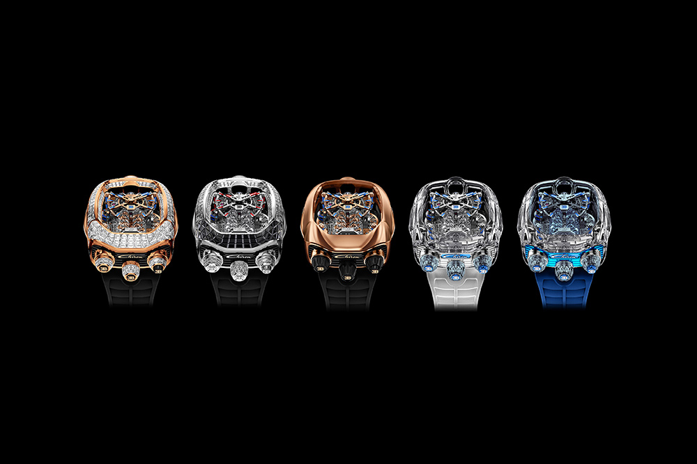 Think of all the things that come with the Bugatti sensation: precision, beauty, performance… all linked by the beating heart of the engine that powers the most advanced hyper sports cars in the world. Introduced in April 2020, the Jacob & Co. x Bugatti Chiron Tourbillon is a timepiece that brings together the most important feelings that are synonymous with the Bugatti brand, as the iconic 16-cylinder Bugatti engine comes to life in timepiece form for the first time. Representing the artistry, dedication and skill portrayed by the Chiron, four new editions of the timepiece have been revealed as the pinnacle of the automotive industry meets the height of watchmaking.