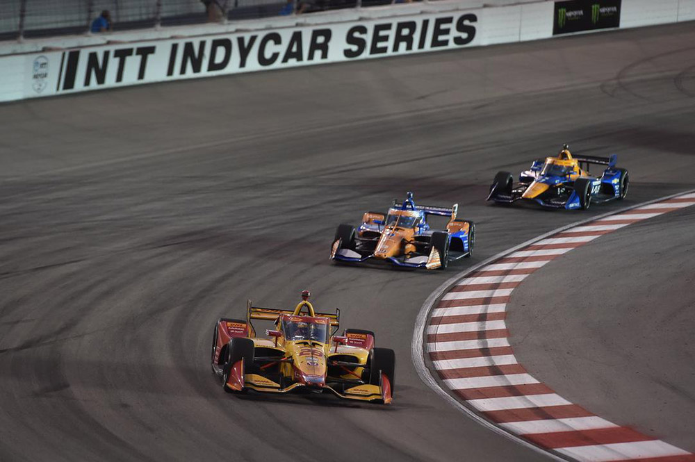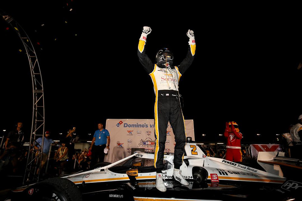 Newgarden drove his No. 2 Sonsio Team Penske Chevrolet to victory by 0.5397 of a second over Pato O’Ward’s No. 5 Arrow McLaren SP. O’Ward didn’t enter Victory Lane, but he also was a big winner of the night by taking the championship lead by 10 points over Alex Palou, who placed 20th after being eliminated in a three-car accident early in the race.