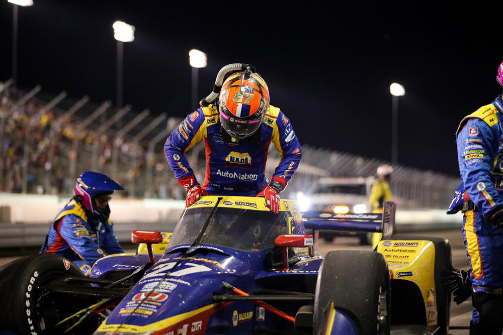 2016 Indianapolis 500 presented by Gainbridge winner Alexander Rossi was running in the top five for part of the race and appeared to be a threat to Newgarden when he hit the SAFER Barrier in Turn 2 on his out lap after his final pit stop on Lap 201. Rossi placed 17th in the No. 27 NAPA AUTO PARTS/AutoNation Honda.