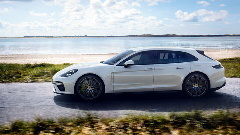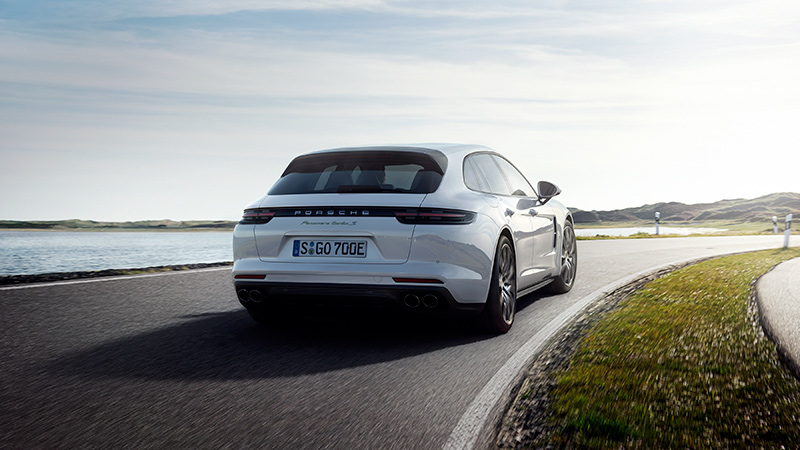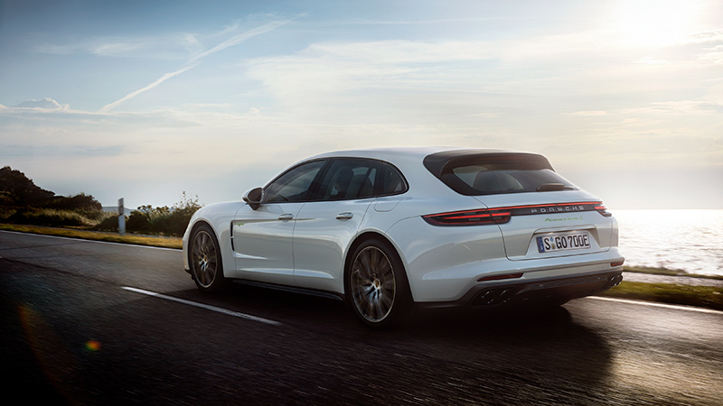 Porsche is expanding its hybrid range, as a powerful plug-in hybrid is being added to the Panamera Sport Turismo model line. The new Porsche Panamera Turbo S E-Hybrid Sport Turismo flagship model will combine a four-litre V8 engine with an electric motor, resulting in a system power of 500 kW/680 hp. Even when just above idle speed, the Panamera Turbo offers 850 Nm of torque. That means it accelerates from zero to 100 km/h in 3.4 seconds and reaches a top speed of 310 km/h. Average consumption in the New European Driving Cycle (NEDC) is 3.0 l/100 km. The most powerful Sport Turismo has a range of up to 49 kilometres using solely electric power and therefore producing zero local emissions. It is not just the balance between performance and efficiency that makes the Panamera Turbo S E-Hybrid Sport Turismo unique in its segment; its spatial concept, including a large tailgate, low loading edge, increased luggage compartment volume and a 4+1 seating configuration, means that the new flagship of the model line offers a high standard of everyday practicality. Porsche combines unique design and excellent everyday practicality with top performance and maximum efficiency.