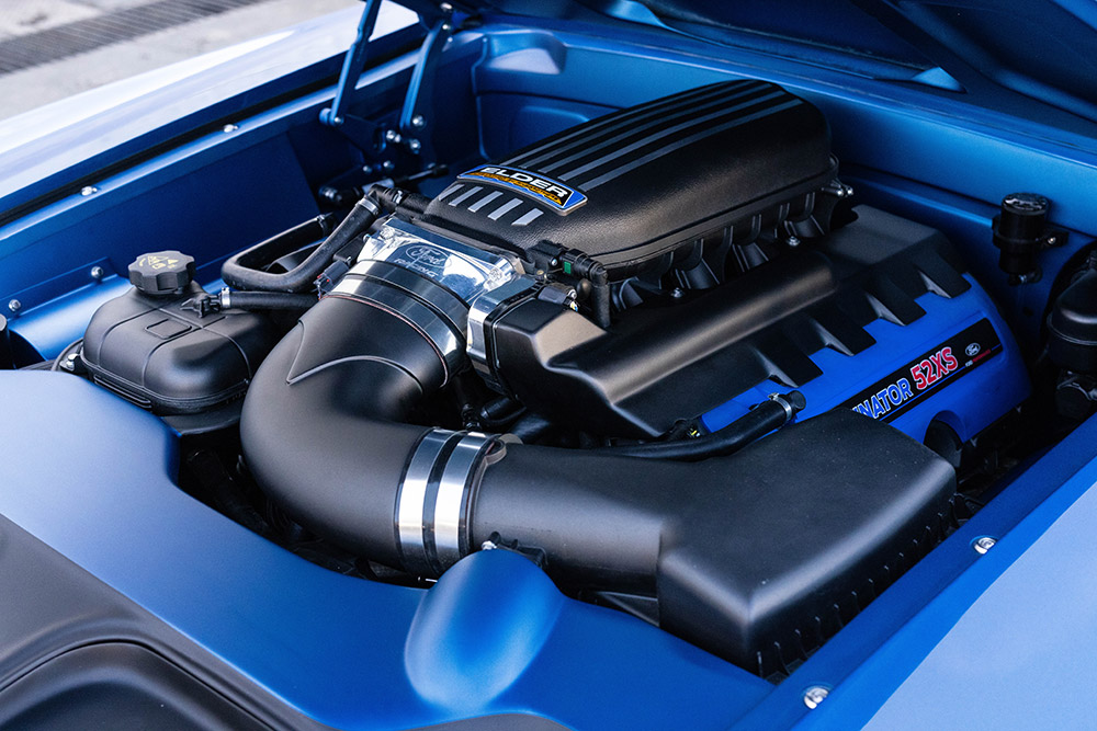 A complete reimagining of the original Ford Mustang Mach 1, PATRIARC has performance levels well beyond those thought possible in 1969. At the heart of PATRIARC is a Ford Performance Aluminator 5.2 XS engine producing 580 horsepower and 445 lb-ft of torque. All that power is transferred to a Strange Engineering 9-inch rear end via a Bowler Tremec T-56 Magnum six-speed manual equipped with a Centerforce clutch. Gargantuan levels of grip come from sticky and wide Michelin Pilot Sport 4S tires wrapped around HRE Wheels G-Code Edition wheels. Penske Racing Shocks RS Edition coilovers and independent front and rear Roadster Shop FAST TRACK suspension team to keep the Mustang Mach 1 glued to the ground. All of it is stopped by Baer Brakes 14-inch rotors and six-piston calipers.
