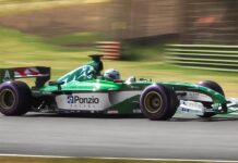 Watch the 3.0-litre powered car in action during the 2017 and 2018 Historic Minardi Day at Imola Circuit