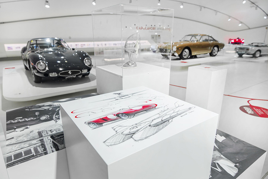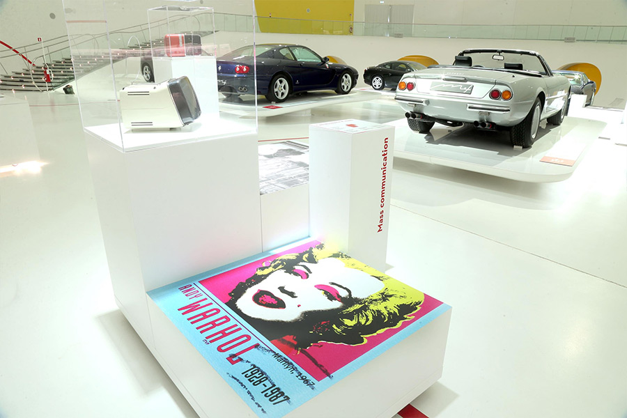 For this reason, the cars are displayed in context alongside other “masterpieces” from a range of different sectors, from furniture to electronics. An interplay of cross-references and mutual influences – with images of artistic and architectural works and icons of music and cinema – reveal unexpected associations and unprecedented combinations with the Ferraris from the various eras. An invitation to view car design from a different perspective – as an expression of some of the biggest creative movements in history.