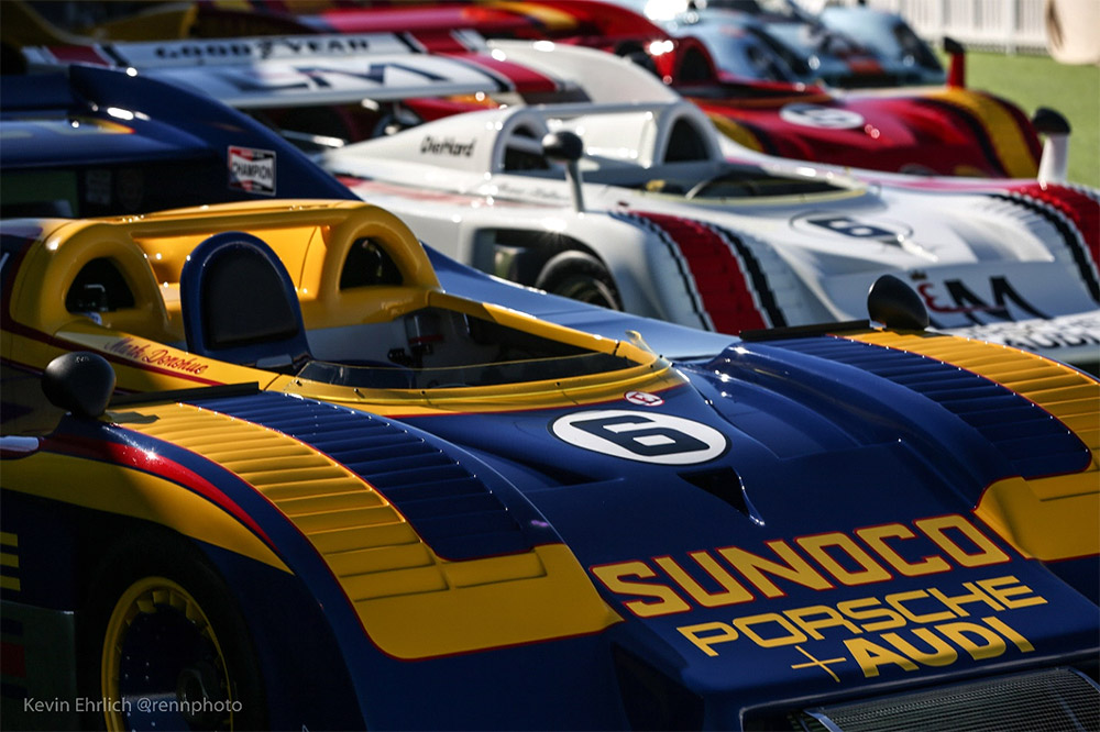 The 917 brought Porsche its first overall 24 Hours of LeMans win, starred with Steve McQueen in “LeMans,” and dominated the Can-Am series. With a variety of body styles, the twelve-cylinder racer added hefty chapters to the Porsche motorsport history books. One is special, but half a dozen together is exceedingly rare. A pair of 917K cars in Gulf livery, a trio of 917/10 cars and a mighty Sunoco 917/30 car soaked up the endless attention. Judging by the number of camera phones deployed in their proximity, the Porsche 917 ensemble was a hit.