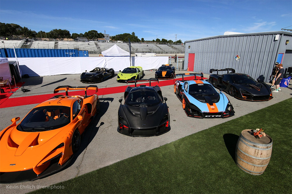 Nearby, a black carbon fiber Elva, a 720S and a P1 filled out the group. During brief gaps in the action, a pair of 720S McLarens gave smiling guests a quick tour around the track. Organizers reserved time at the beginning of Saturday and Sunday festivities to allow the Luxury Collection and its customers to circulate around Laguna Seca Raceway.